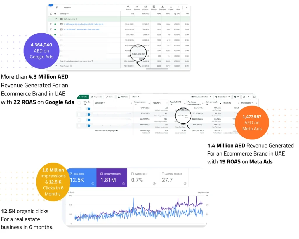 Every result you see here is backed by data and real ad accounts. These screenshots represent consistent performance across eCommerce brands—focused on revenue growth, profitable ROAS, and scalable acquisition.